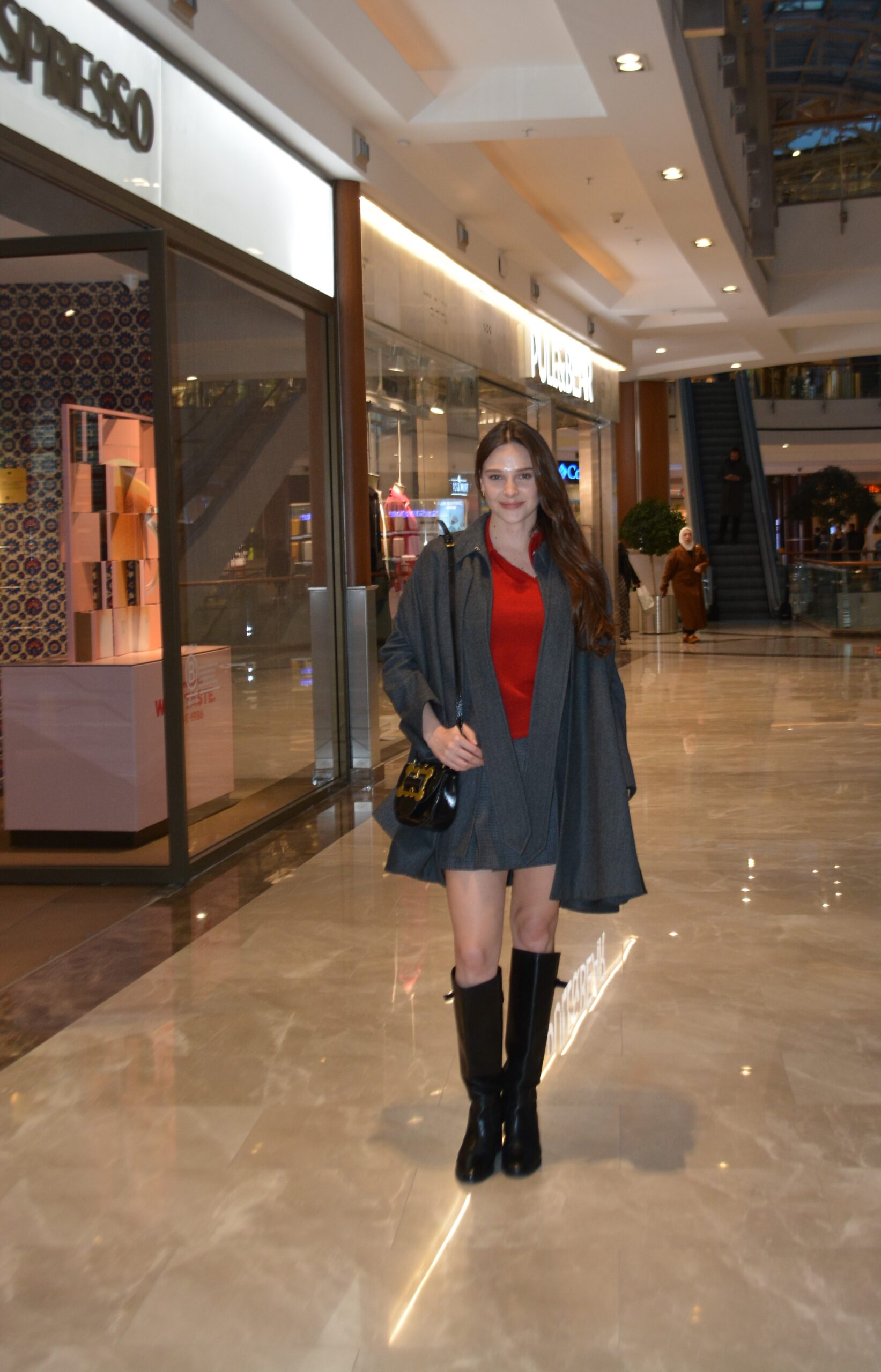 oyuncu Alina Boz, önceki gün İstinyePark AVM’de objektiflere yansıdı. Akşam saatlerinde eşi Umut Evirgen ile birlikte alışveriş merkezine gelen ünlü oyuncu, dünyaca ünlü markaların bulunduğu mağazaları gezdi. Şık tarzıyla dikkat çeken Boz, kısa süren alışveriş turunun ardından kahve molası verdi. Muhabirlerin fotoğraf isteğini geri çevirmeyen güzel oyuncu, objektiflere gülümseyerek poz verirken Umut Evirgen ise kareye girmedi.,